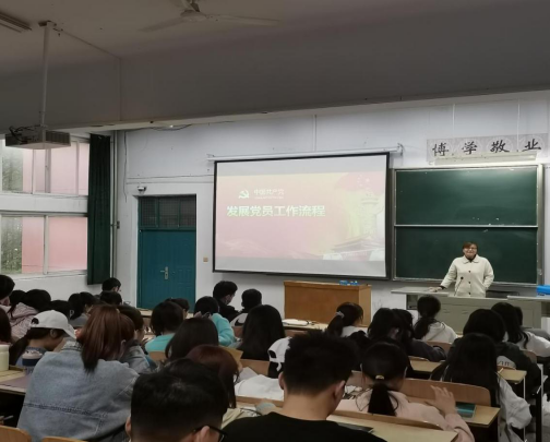 2021年4月30日下午,数理学院学生第二党支部书记王萌亚老师在B合十六以《党员发展的流程》为题,为第27期党校培训班的入党积极分子们上党课。