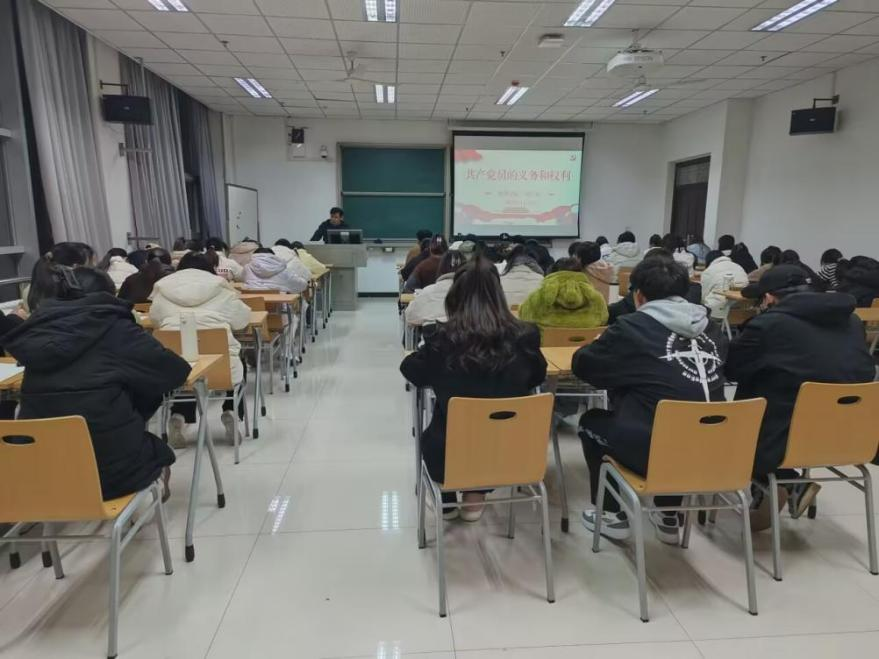 2023年11月30日晚上7:00,数理学院在文综楼E-312进行了以“共产党党员的义务和权利”为主题的分党校培训,本次培训由数理学院副院长周宏宪主讲。