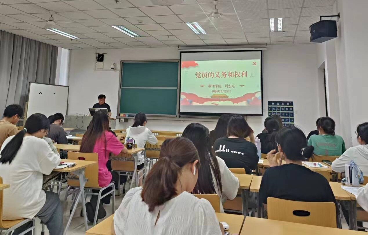2024年5月25日下午,副院长周宏宪在E-316教室以“党员的义务和权利"为主题为第33期入党积极分子上党课。