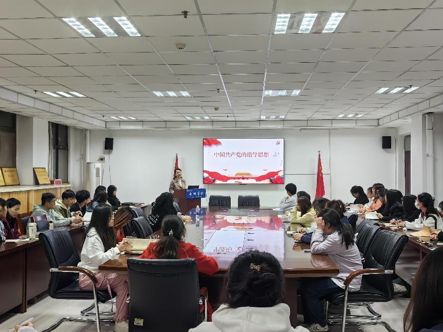 党课上,牛裕琪院长详细讲解了党的指导思想的重要性和意义,以及它在党的历史发展中所起的关键作用。她从七个方面详细阐述党的指导思想,分别是马克思列宁主义、毛泽东思想、邓小平理论、“三个代表”重要思想、科学发展观、习近平新时代中国特色社会主义思想和中国特色社会主义理论体系。
