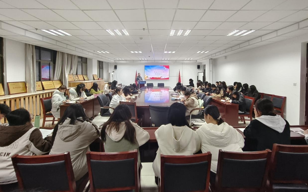 11月17日晚上,在E-2029教室,教工第二党支部书记岳晓鹏上党课——《以中国式现代化全面推进中华民族伟大复兴》。