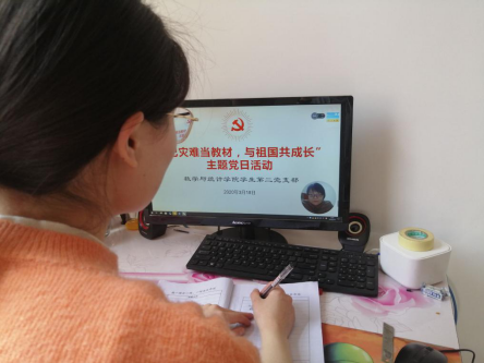 数学与统计学院学生第二党支部于2020318日开展“把灾难当教材,与祖国共成长”主题党日活动,二支部全体学生党员参加了党日活动。此次活动由党支部书记王萌亚主持,借助学习强国视频会议及WPS同步课堂召开。