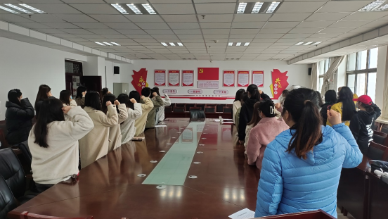 主题党日活动在庄严的重温入党誓词中开始。支部全体党员面对鲜红的党旗,高举右手,庄严宣誓,重温自己的入党誓词,铿锵有力地许下自己为共产主义奋斗终身的决心。