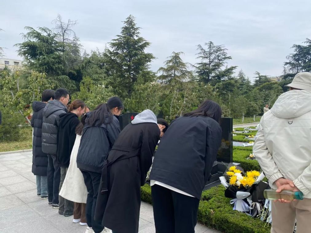 在革命英雄纪念碑前,学生第一、二党支部党员同志们向为革命先烈致敬,集体默哀3分钟,表达对革命先辈的敬意和怀念。党员同志们向革命烈士墓敬献花束,表达对革命先烈的崇高敬意。