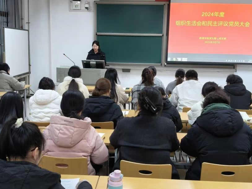 2025年3月7日下午,学生第一党支部召开2024年度组织生活会和民主评议党员会议。党支部全体党员参加会议,会议由支部书记仝婧主持,支部联点领导数理学院党委书记苗宝军同志莅临指导。