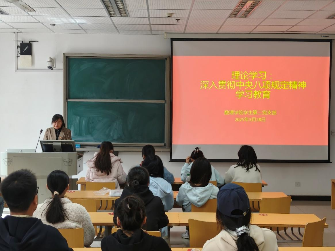 3月28日下午,数理学院学生第二党支部在文综楼E-204开展3月份主题党日活动。支部书记王萌亚、2024年下半年新入党的9名党员,支部全体党员参加,23级、24级入党积极分子列席观摩。主题党日活动由叶森涵主持。