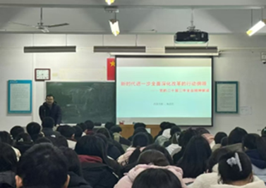 12月15号晚上六点半,中原农耕博物馆副馆长朱志浩老师在C506教室为同学们开展了一场关于新时代进一步全面深化改革的行动纲领——党的二十届三中全会精神解读的讲座。